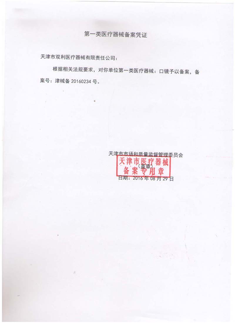 您所在的位置:主頁>>一類醫療器械備案憑證
